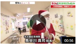 番組では、小児科病棟で行ったクリスマス企画の様子が放送され、院長がサンタクロースに扮して、天白区マスコットキャラクターの「かぼっち」と一緒に子どもたちに笑顔を届ける場面が紹介されました。